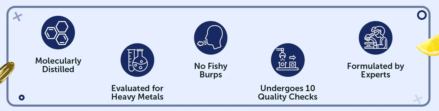 Deep Sea Fish Oil is India’s first lemon-flavored Omega 3 fish oil capsule that doesn’t leave any unpleasant aftertaste, fishy smell, or fishy burps.